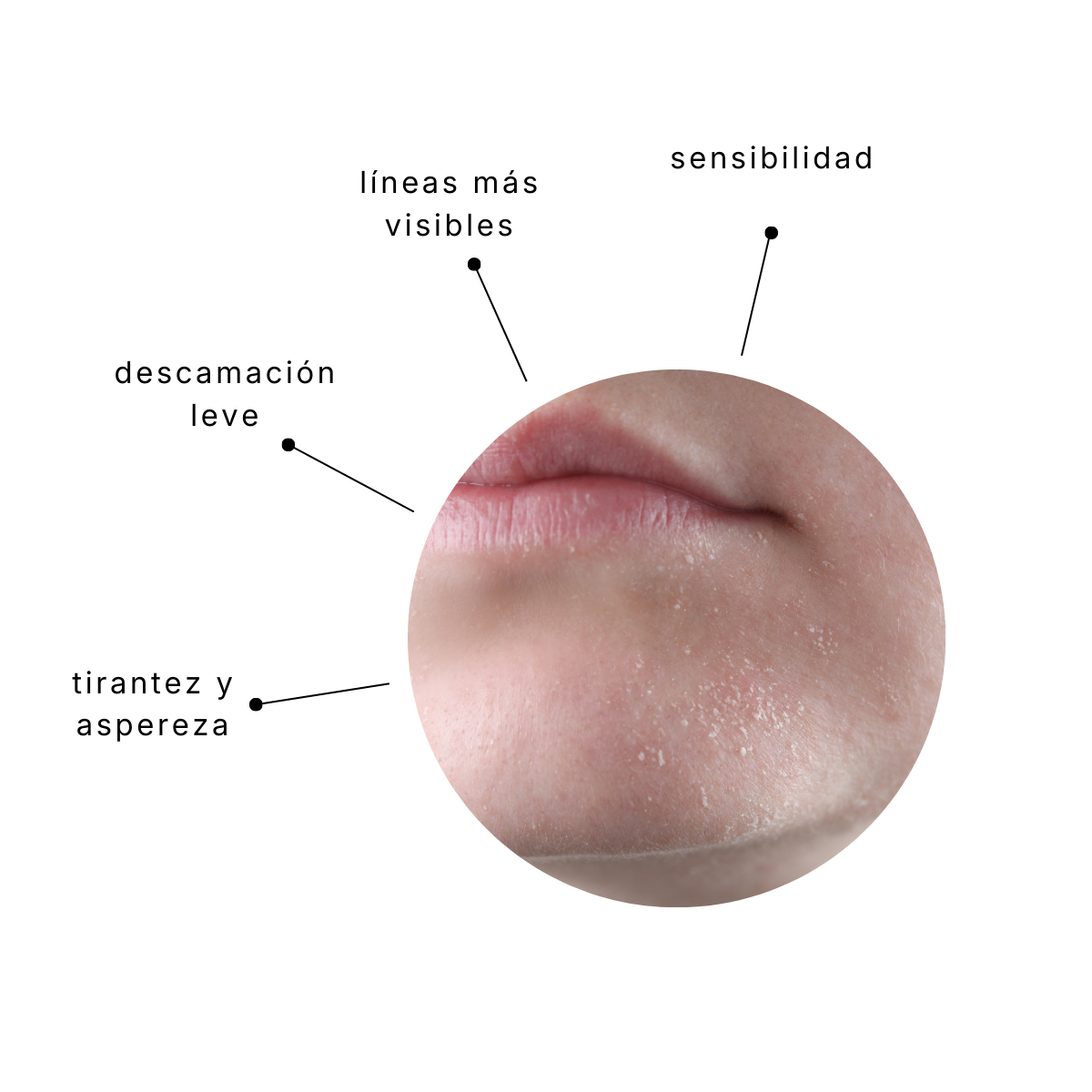 - Tirantez y aspereza: especialmente después de lavar el rostro.